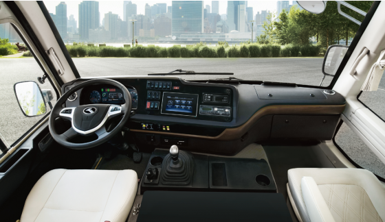 The King Long Kingster is equipped with an all-new car type instrument panel featuring a compact design with wooden decoration to create a gorgeous driving experience. It will provide you with easy and overall control by just one arm operation with multiple functions including central LCD instrument, 8-inch high-resolution LCD touch screen with mobile screen projection function, a newly designed multi-functional steering wheel, and independent reading in driver compartment, etc.