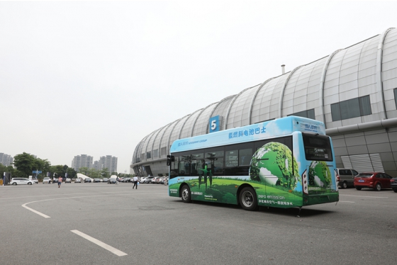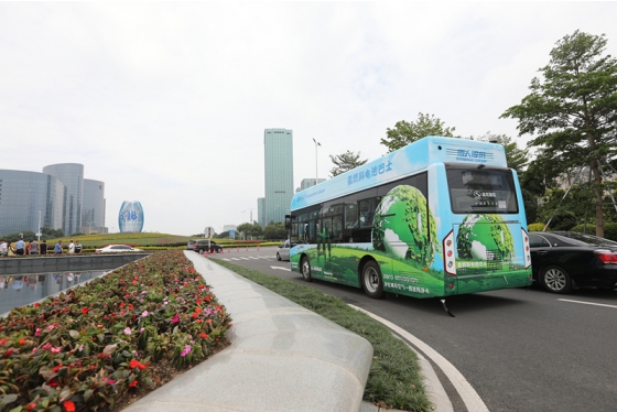 At 7:00 a.m. on June 18, a bus with blue-green body and the words “hydrogen fuel bus” was carrying the staff from Fuzhou Hongshanyuan Road to the ?Strait International Conference and Exhibition Center. It passed through Daqiao South Second Ring Expressway and Linpu Road. Fifteen minutes later, it arrived at the get off point of the Strait International Conference and Exhibition Center Square, with 15 kilometers one way. During the Fair, this hydrogen fuel bus will travel to and from this route.