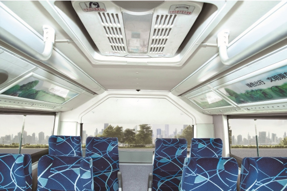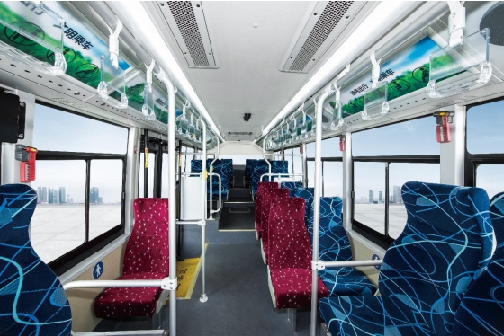 The driver zone of XMQ6850G hydrogen fuel bus is designed based on ergonomics. The precise dashboard is arranged reasonably, greatly improving the driving performance. A hydrogen-battery switch button is provided in the driver zone to enable the driver to fully control the driving safety. The reasonable layout of bus space and fuel cell system brings a spacious environment for passengers. The application of new environmental protection materials in the bus provides passengers with green travel.