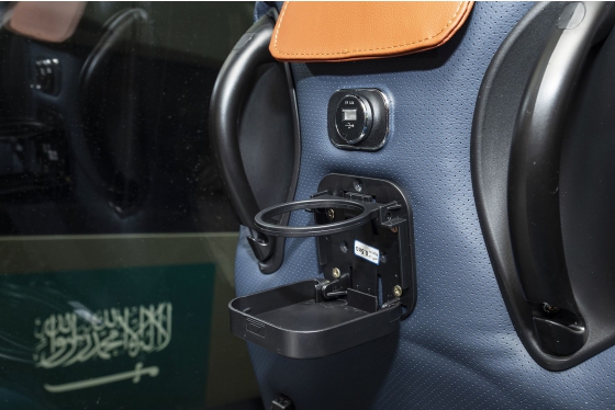 Each seat back is equipped with a cup holder for passengers to put their cups.