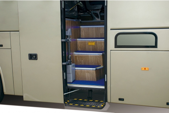 LED outline marker lamps are equipped on each floor of the multi-step entrance to ensure the safety of passengers when boarding and alighting.