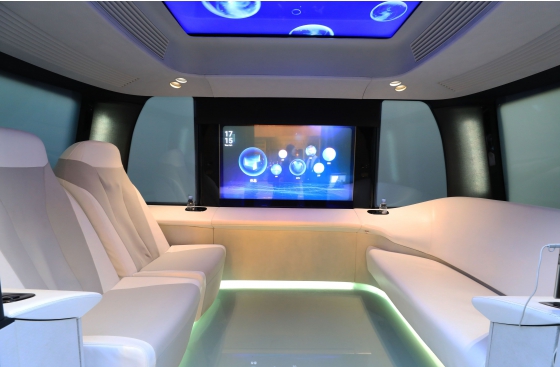 “Self-driving Shuttle Bus” Apolong integrates top high-tech intelligent equipment and intelligent housing. It features conceptual aviation cabin layout, window glass display screen, panoramic intelligent liquid crystal roof, intelligent induction lighting system, massage sofa, surround stereo, etc., bringing a full range of entertainment experience and atmosphere.