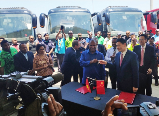 On October 10th, the vehicle handover ceremony under the assistance of China to Papua New Guinea was held at Port Moresby, the capital of Papua New Guinea. Xue Bing, Chinese Ambassador to Papua New Guinea, attended the ceremony and signed the handover certificate with Maru, the Minister of the Ministry of Planning of Papua New Guinea. On the same day, 94 vehicles donated by China, including 85 King Long buses and private buses, were officially delivered to Papua New Guinea, together with the friendship of the Chinese people.