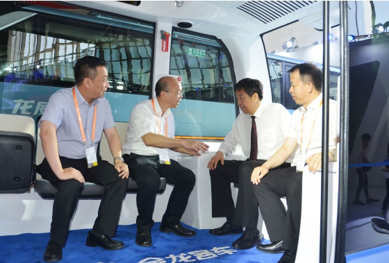 The member of Party Leadership Group of the Ministry of Transportation Li Jianbo visits King Long exhibition booth and experiences Apolong