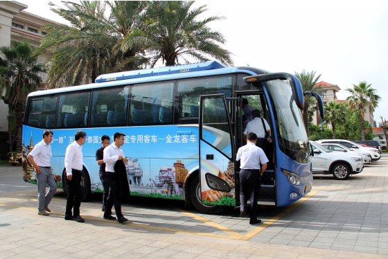 In recent years, an increasing number of visitors to Thailand brings broad development space for local passenger sector of Thailand. Boasting aesthetic appearance, higher comfort and excellent quality, the luxury King Long tourist coaches occupied the local markets of Thailand. Since was exported to Thailand in batches in 2011, this bus model has run through the Thailand up to nearly 2,000 and become the main backbone of tourist coaches in this country. To some extent, King Long coaches witness the economic and trade cooperation and mutual benefit between parties. It is for this reason that King Long coaches were designated as the special transportation tools for this event, providing commuter service for guests, staffs concerned.