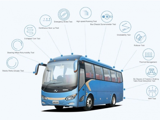 The use of high strength steel, the integration of 3H-structured integral body design, the enhanced brake system capable for effective reduction of emergency braking distance, and the Adaptive Front-Lighting System remarkably improve the active and passive safety of the vehicle. The multiple safeguard functions build a safer and more durable bus for the operations.
