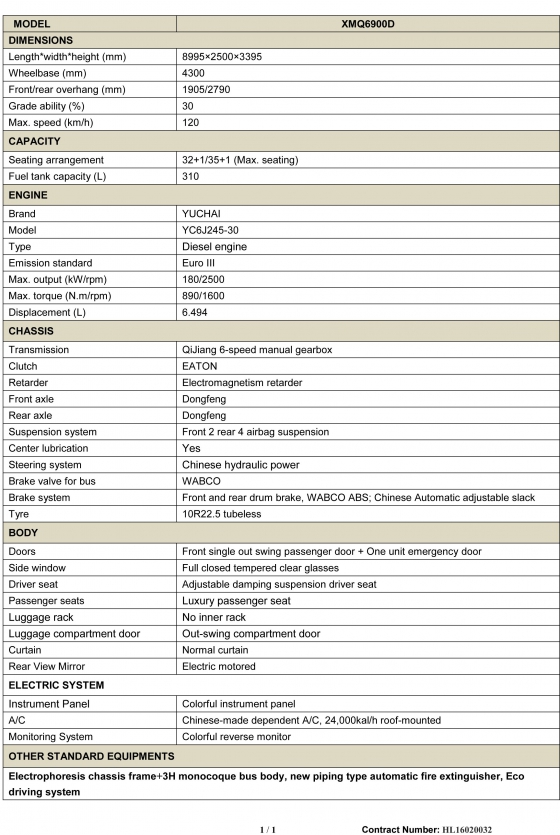 XMQ6900D TECHNICAL SPECIFICATION