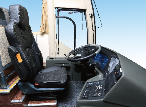 Side placement of engine makes it possible to adopt low floor design and offer quick boarding and alighting experience.