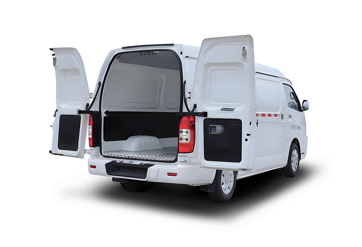Le châssis renforcé est équipé de cinq ressorts pour une meilleure performance de charge. L’ouverture de la hayon dépasse 2,0 mètres pour un accès aux marchandises sans effort.