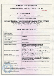 Certificado GOST ruso para King Long XMQ6130Y