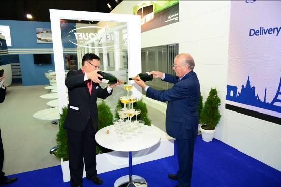 El 18 de octubre, King Long celebró la ceremonia de entrega de sus 40.000Por thVehículo exportado en la exposición, y el Sr. Simon Xie, director de marketing en el extranjero de King Long, entregó la llave de oro al Sr. Gill, representante del distribuidor francés de King Long. Después de eso, llenaron la torre de Champagne para celebrar el evento, y los distribuidores y clientes de King Long, así como los expertos de la industria presenciaron conjuntamente el momento memorable en la historia del desarrollo de King Long.
